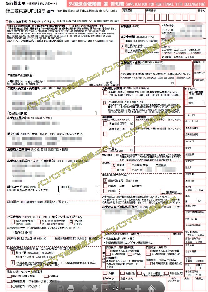 ここでは管理人が銀行振り込み(海外送金)をしたときの事例を紹介します。(送金目的はパコパコママの会員登録の振り込みではありません)