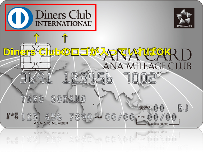 Diners Clubと提携しているクレカというのは、下の図のようにクレジットカードのどこかに「Diners Club」のマークが入っていることです。