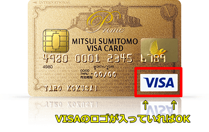 VISAと提携しているクレジットカードというのは、下の図に示すようなクレジットカードのどこかに「VISA」のマークが入っていることです。