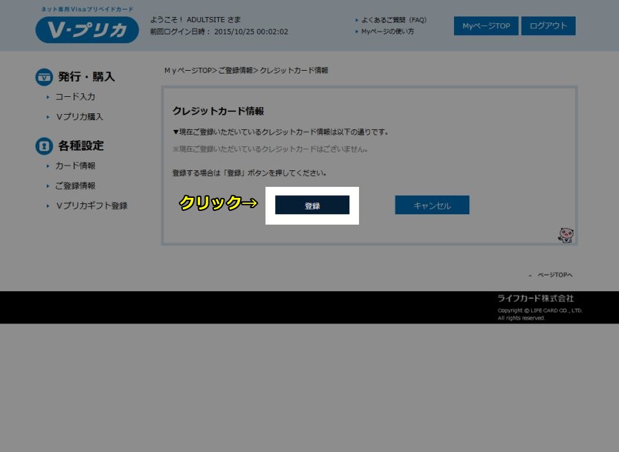 ※すでにVプリカのサイトにクレジットカード情報を登録済みの方はここは飛ばして、次の「Vプリカのクレジットカードでの購入手順を詳細解説」から行ってください。