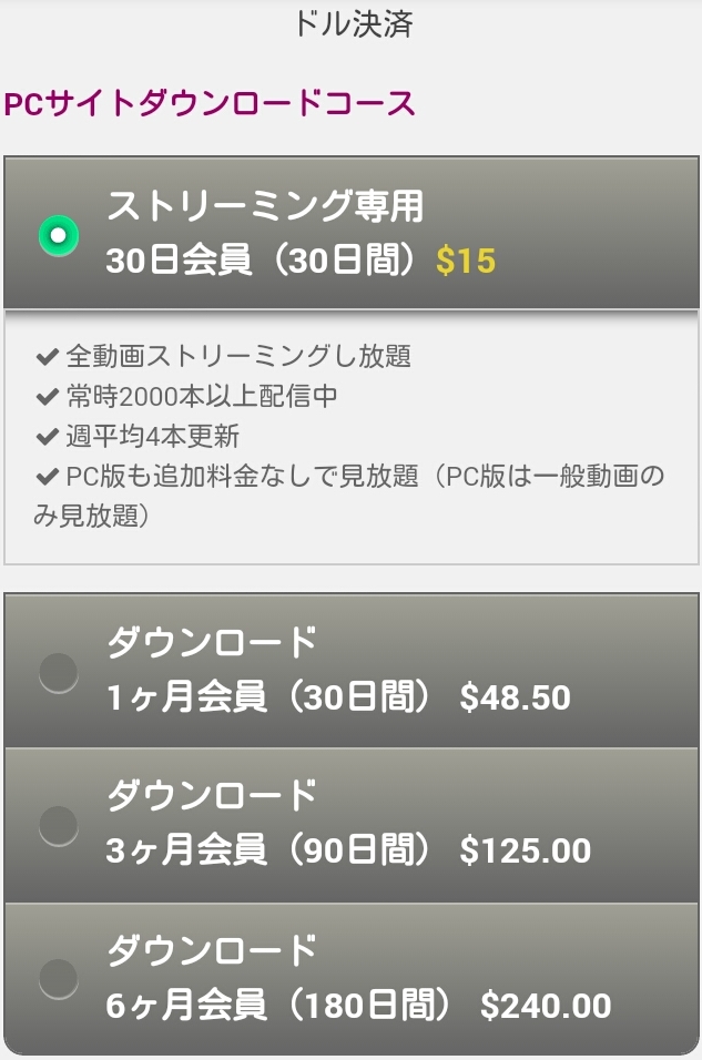 の中から一番上の列のストリーミング会員の下の「お申し込み」をクリックして下さい。